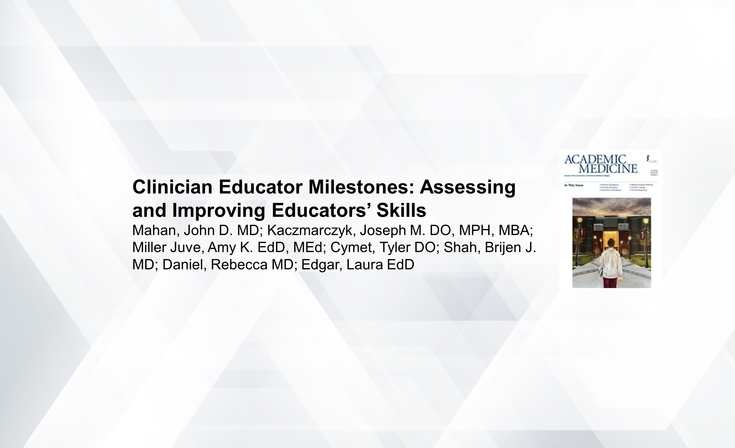 Article in Academic Medicine Discusses the Clinician Educator Milestones Development Process and How to Use Them